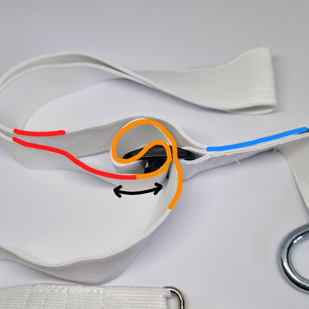 It’s recommended that users new to restoration begin with a low initial tension. This is because the skin needs time to adapt to the tension. For a low level of tension, simply adjust the cord slightly shorter than the user’s waist. Over time, the tension can be increased by shortening the cord.